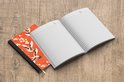 Le bloc -notes a une couverture rigide et est fini avec une reliure noire. Cette reliure a un aspect daim, ce qui lui donne un aspect luxueux. En raison de la reliure noire, le carnet a un dos partiellement noir. En raison de sa taille compacte, le carnet à couverture rigide est facile à transporter.