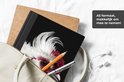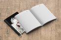 Le bloc -notes a une couverture rigide et est fini avec une reliure noire. Cette reliure a un aspect daim, ce qui lui donne un aspect luxueux. En raison de la reliure noire, le carnet a un dos partiellement noir. En raison de sa taille compacte, le carnet à couverture rigide est facile à transporter.