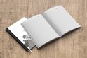 Le bloc -notes a une couverture rigide et est fini avec une reliure noire. Cette reliure a un aspect daim, ce qui lui donne un aspect luxueux. En raison de la reliure noire, le carnet a un dos partiellement noir. En raison de sa taille compacte, le carnet à couverture rigide est facile à transporter.