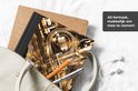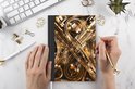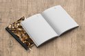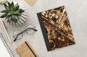 Le bloc -notes a une couverture rigide et est fini avec une reliure noire. Cette reliure a un aspect daim, ce qui lui donne un aspect luxueux. En raison de la reliure noire, le carnet a un dos partiellement noir. En raison de sa taille compacte, le carnet à couverture rigide est facile à transporter.