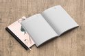 Le bloc -notes a une couverture rigide et est fini avec une reliure noire. Cette reliure a un aspect daim, ce qui lui donne un aspect luxueux. En raison de la reliure noire, le carnet a un dos partiellement noir. En raison de sa taille compacte, le carnet à couverture rigide est facile à transporter.