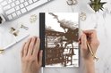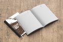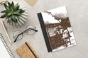 Le bloc -notes a une couverture rigide et est fini avec une reliure noire. Cette reliure a un aspect daim, ce qui lui donne un aspect luxueux. En raison de la reliure noire, le carnet a un dos partiellement noir. En raison de sa taille compacte, le carnet à couverture rigide est facile à transporter.