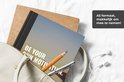 Le bloc -notes a une couverture rigide et est fini avec une reliure noire. Cette reliure a un aspect daim, ce qui lui donne un aspect luxueux. En raison de la reliure noire, le carnet a un dos partiellement noir. En raison de sa taille compacte, le carnet à couverture rigide est facile à transporter.