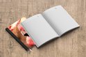 Le bloc -notes a une couverture rigide et est fini avec une reliure noire. Cette reliure a un aspect daim, ce qui lui donne un aspect luxueux. En raison de la reliure noire, le carnet a un dos partiellement noir. En raison de sa taille compacte, le carnet à couverture rigide est facile à transporter.