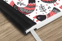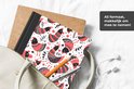 Motifs de poulets avec des vêtements rouges sur fond blanc.