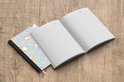 Le bloc -notes a une couverture rigide et est fini avec une reliure noire. Cette reliure a un aspect daim, ce qui lui donne un aspect luxueux. En raison de la reliure noire, le carnet a un dos partiellement noir. En raison de sa taille compacte, le carnet à couverture rigide est facile à transporter.