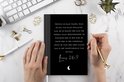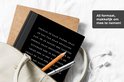 Le bloc -notes a une couverture rigide et est fini avec une reliure noire. Cette reliure a un aspect daim, ce qui lui donne un aspect luxueux. En raison de la reliure noire, le carnet a un dos partiellement noir. En raison de sa taille compacte, le carnet à couverture rigide est facile à transporter.