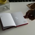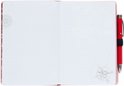 Carnet A5 avec stylo de projection. Avec couverture plastifiée mate, intérieur modifié, coins arrondis et reliure collée. Comprend 96 feuilles (192 pages) de 100 g d'épaisseur.