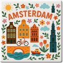 Donnez à votre intérieur une touche joyeuse et colorée avec ce carrelage unique Amsterdam! L'illustration rassemble de manière ludique des canaux, des pignons à gradins et des ponts confortables autour du centre-ville, encadrés de fleurs et de couleurs fraîches.