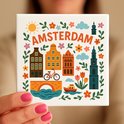 Illustration colorée d' Amsterdam avec des monuments locaux
