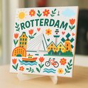 Carreau Rotterdam - 15 x 15 cm - Céramique - Souvenir décoratif - Avec support/chevalet transparent - Cadeau - Carreaux avec texte