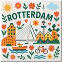Donnez à votre intérieur une touche joyeuse et colorée avec ce carrelage Rotterdam unique ! L'illustration réunit de manière ludique le pont Érasme, l'horizon moderne et l'atmosphère du port, encadrés de fleurs et de couleurs fraîches.