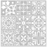 carrelages PVC Tulup - carrelages Vinyl motif portugais - 30 cm x 30 cm - carrelages PVC autocollantes Grijs - Lot de 9 - carrelages Vinyl autocollantes - Dalles adhésives mosaïque - carrelages de sol Vinyl - Dalles adhésives cuisine et salle de bain