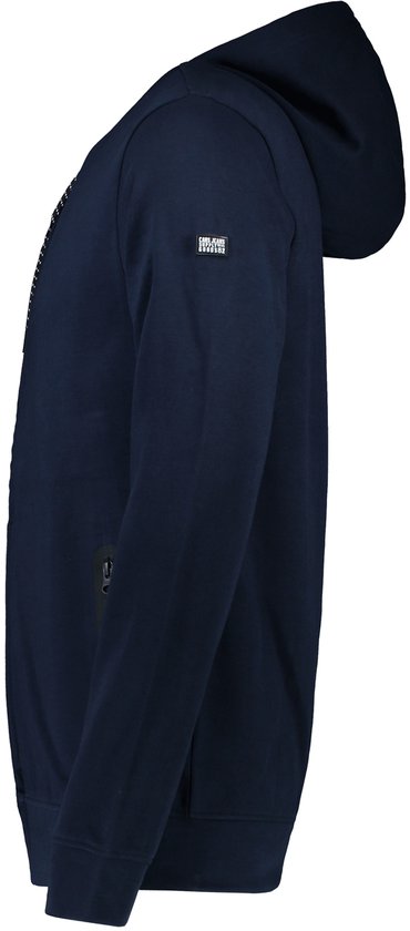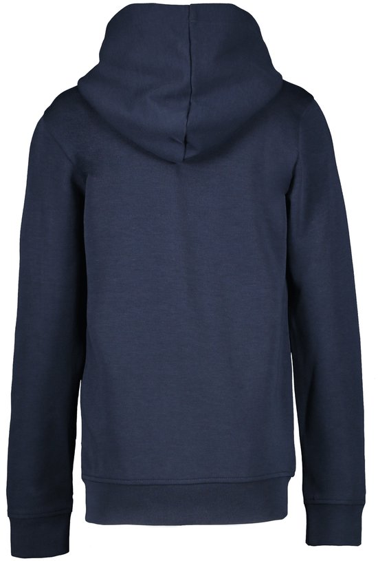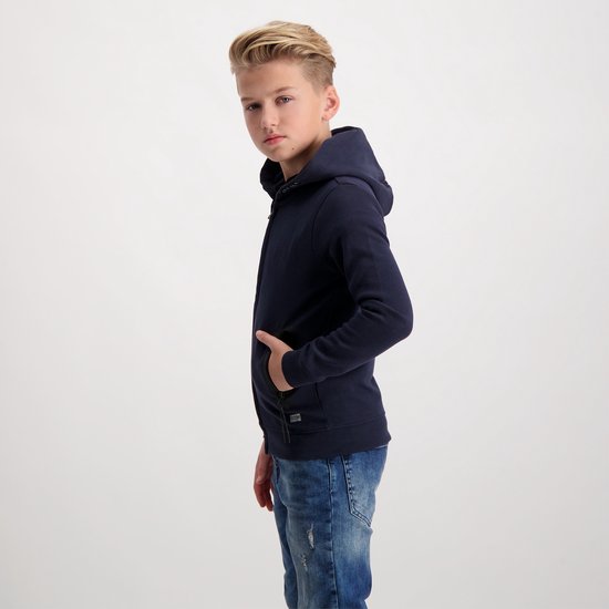 Veste sweat bleu foncé avec capuche pour garçon de Cars Jeans. Les deux poches peuvent être fermées par une fermeture éclair.