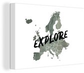 Carte de l'Europe à l'aquarelle grise avec la citation Explorez l'invisible 120x80 cm - Tirage photo sur toile (Décoration murale salon / chambre)