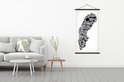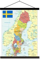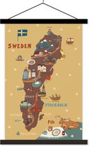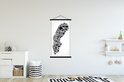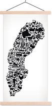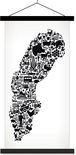 Carte de la Suède avec icônes en noir et blanc 90x180 cm