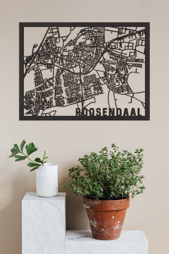 Carte de la ville en bois Roosendaal Zwart Mdf 100x75cm Décoration murale pour City Shapes au mur