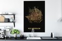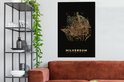 Carte dorée de Hilversum avec coordonnées en dessous.