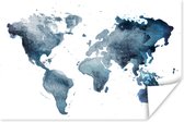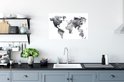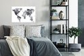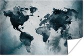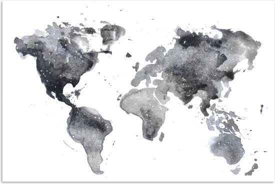 Carte du monde abstraite réalisée à l'aquarelle noire et grise 90x60 cm