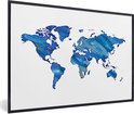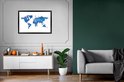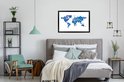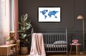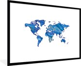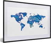Carte du monde aquarelle bandes bleues sur fond blanc 90x60 cm