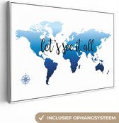 Carte du monde bleu sur fond bleu décorée d'illustrations de fleurs 120x80 cm