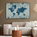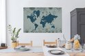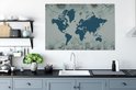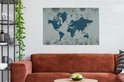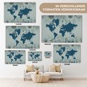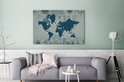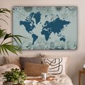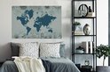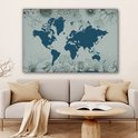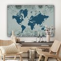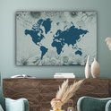 Carte du monde bleu sur fond bleu décorée d'illustrations de fleurs 140x90 cm