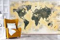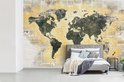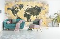 Carte du monde gris foncé sur fond avec peinture orange et journal 420x280 cm