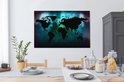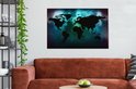 Carte du monde noir sur fond sombre aux couleurs des aurores boréales 120x80 cm