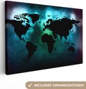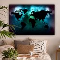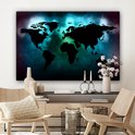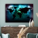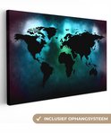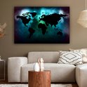 Carte du monde noir sur fond sombre aux couleurs des aurores boréales 140x90 cm