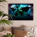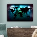 Carte du monde noir sur fond sombre aux couleurs des aurores boréales 60x40 cm