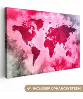 Carte du monde noire avec des taches grises sur fond rose 60x40 cm