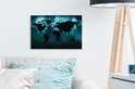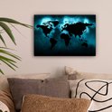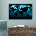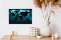 Carte du monde noire sur fond sombre aux couleurs bleues 30x20 cm