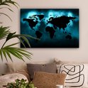 Carte du monde noire sur fond sombre aux couleurs bleues 90x60 cm