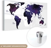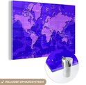 Carte du monde robuste de couleur violette avec des ombres Plexiglas 120x80 cm - Tirage photo sur Glas (décoration murale en plexiglas)
