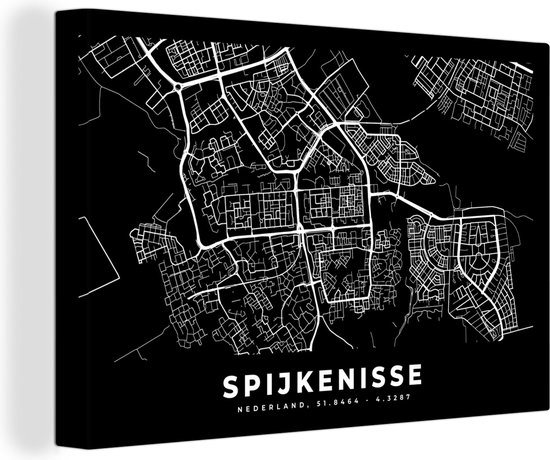 Tableaux sur toile - Carte - Spijkenisse - Zwart - Salon - Chambre