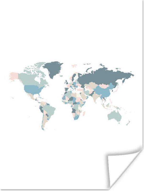 Cartes du monde du Wereldkaart - Blauw - Rose - 60x80 cm