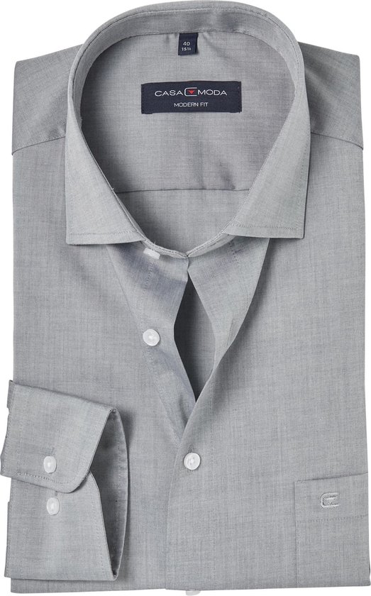 Casa Moda Chemise Unie Gris Argent Kent Coupe Moderne - 44
