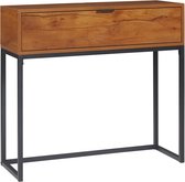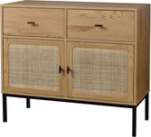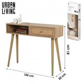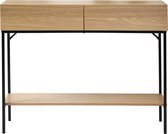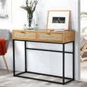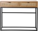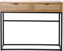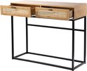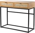 Casâme - Table Console - Avec 2 Tiroirs - Rotin Osier - Table Murale - Table d'Appoint - 100 x 35 x H80 cm - Aspect Chêne - Aggloméré et Rotin