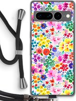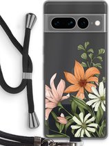 Case Company® - Coque Google Pixel 7 Pro avec cordon - Flora Classic - Coque de téléphone avec cordon Zwart - Protection sur tous les côtés et sur le bord de l'écran