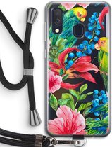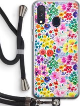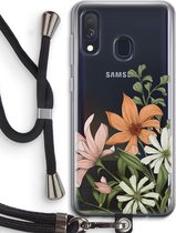 Case Company® - Coque Samsung Galaxy A40 avec cordon - Flora Classic - Protection de téléphone avec cordon Zwart - Protection sur tous les côtés et sur les bords de l'écran