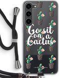 Case Company® - Coque Samsung Galaxy S23 Plus avec cordon - Cactus Quote - Coque de téléphone avec cordon Zwart - Protection sur tous les côtés et sur le bord de l'écran