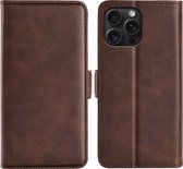 Case2go - Étui de téléphone adapté pour iPhone 16 Pro Max - Étui portefeuille - Avec fermeture magnétique - Marron