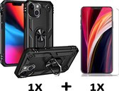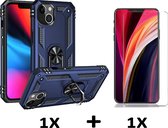 Casemania Coque pour Apple iPhone 15 Plus Blauw & 2X Protecteur d'écran en Verres - Armure Hybride Anti-Choc avec Ring de Béquille