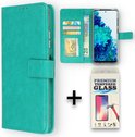 Casemania Coque pour Oppo Reno 8T 4G Turquoise & Protecteur d'écran en Verres - Etui Portefeuille - Porte Carte & Languette Magnétique