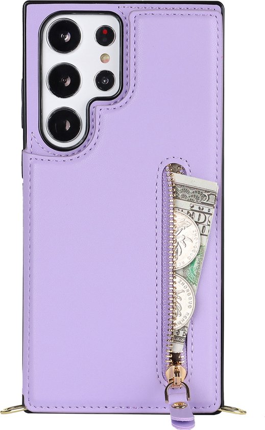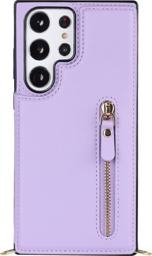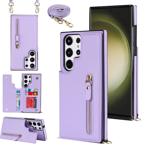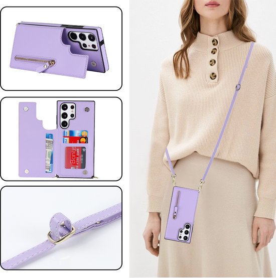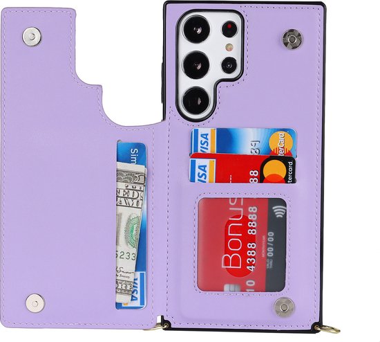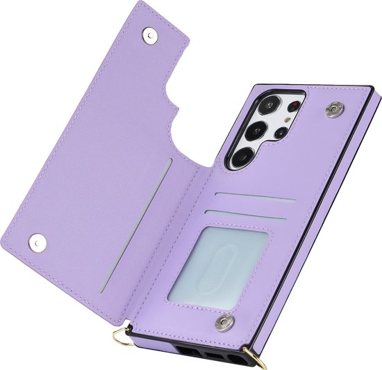 Casemania Coque pour Samsung Galaxy S24 Ultra Violet - Coque Arrière de Luxe avec Cordon - Étui Portefeuille - Porte-Cartes