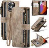 Écrit pour: CaseMe Case - Convient pour iPhone 16 Pro Case - CaseMe C30 Book Case avec portefeuille - Marron