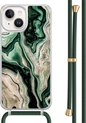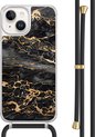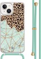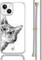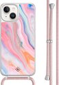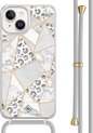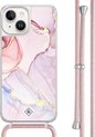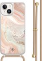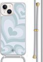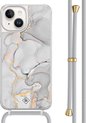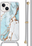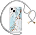 Casimoda® - Coque iPhone 14 avec cordon gris - Marbre bleu clair - Cordon amovible - TPU/acrylique