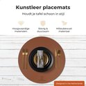 Castagnola Napperons de table aspect cuir - Napperons ronds - Set de table antidérapant en simili cuir - Sous-couche hydrofuge - Dessous de verre - 6 pièces - Diamètre 38 cm - Marron
