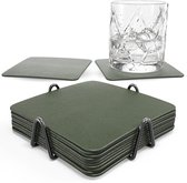 Castagnola Napperons de Table Aspect Cuir - Set de Table Antidérapant en Simili Cuir - Sous-Couche Hydrofuge - Dessous de Verre - 6 Pièces - 45 x 30 cm - Vert