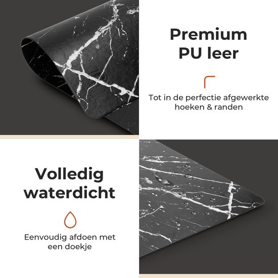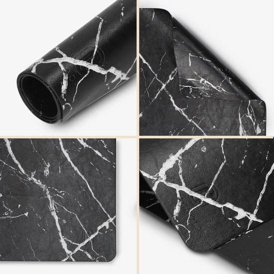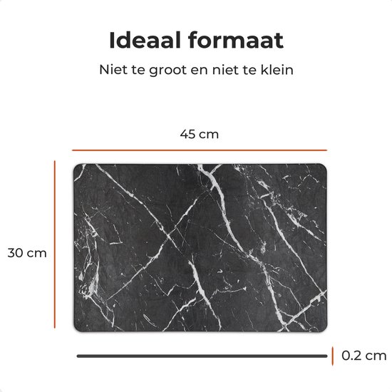 Castagnola Napperons de table aspect cuir - Set de table antidérapant en simili cuir - Sous-couche hydrofuge - Dessous de verre - 6 pièces - 45 x 30 cm - Zwart/ Wit - Motif marbre